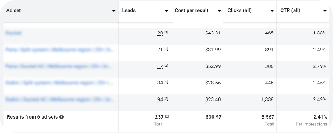 Google ads was quite profitable for I Heat and Cool. We used Google Ads as a tool to leverage repair and servicing requests, for quick action support that customers need. We then built suburb specific campaigns to target service areas. This gave I Heat and Cool better visibility in local spaces, and the ads presented as being more specific than competitors due to the level of detail and structuring in place. This caused plenty of calls to come in, resulting in over 100 calls monthly.