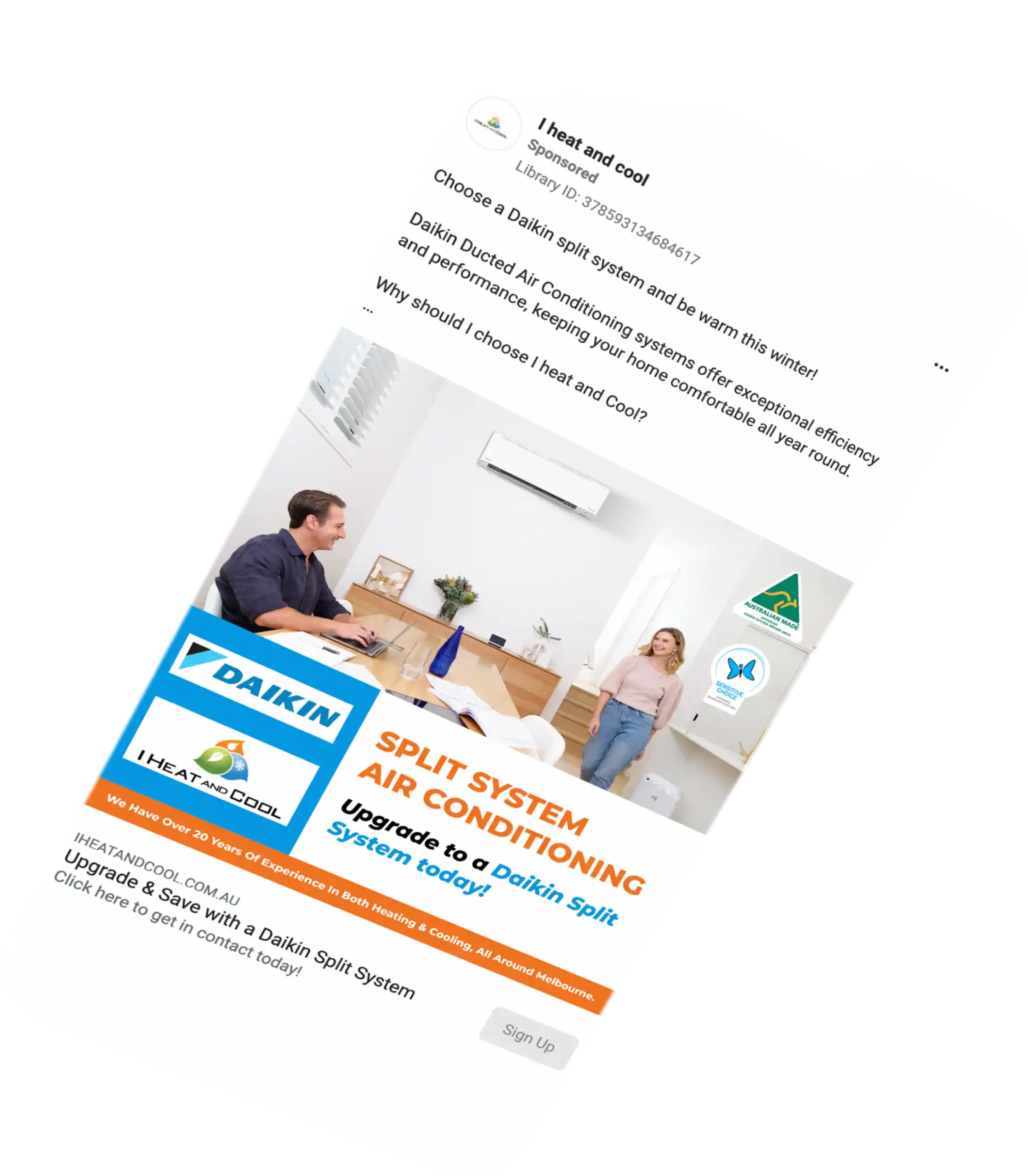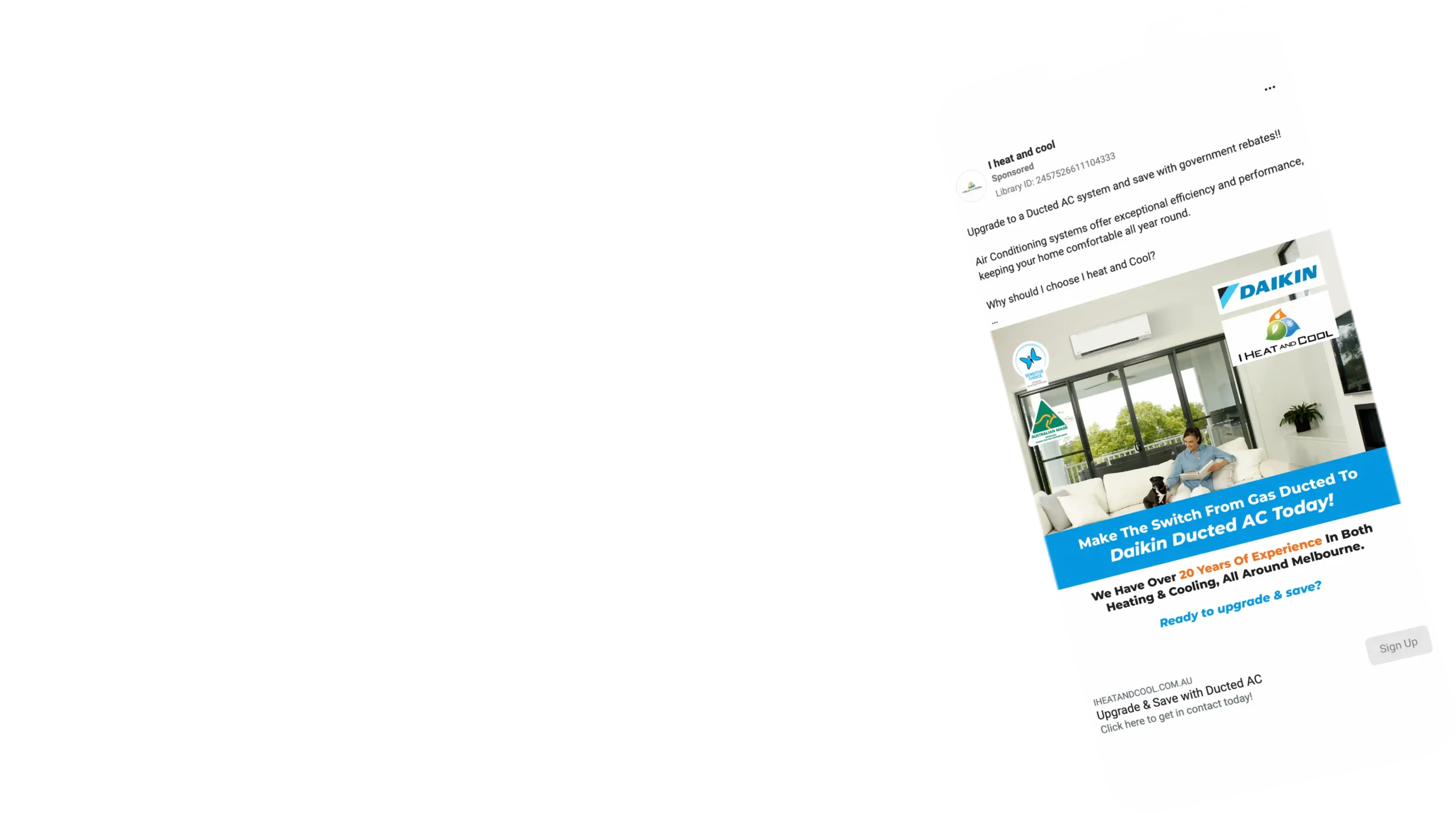 Social ads (Facebook and Instagram) were used to generate leads for installations of ducted and split system products. We presented direct pricing to consumers that were competitive in the market, giving I Heat and Cool an edge over the competition. This worked really well for them, gaining cheap leads resulting in a high conversion rate! Through our social ads work, it has pushed out their calendar from 2 weeks from phone call to install to upwards of 4 weeks!